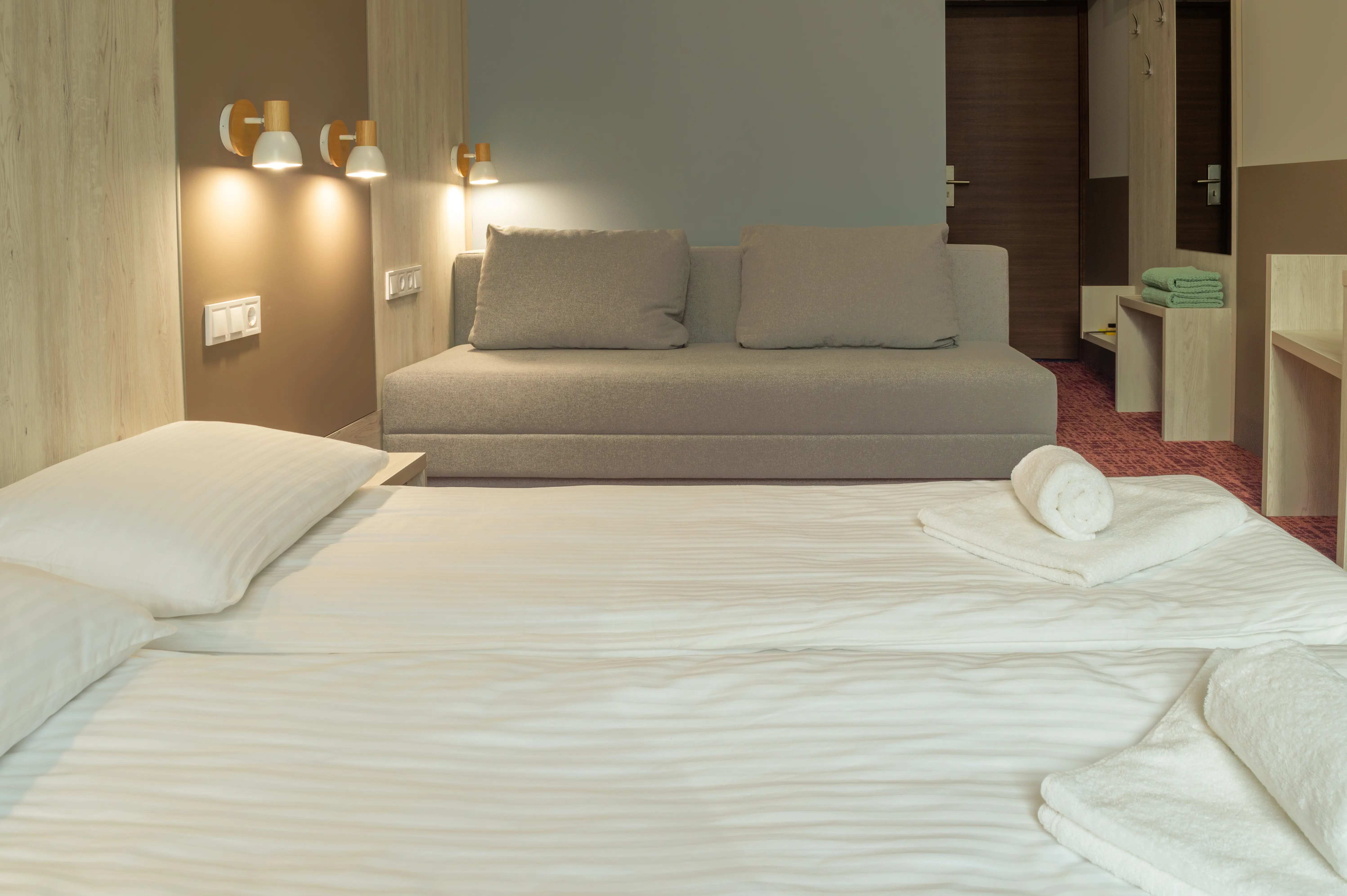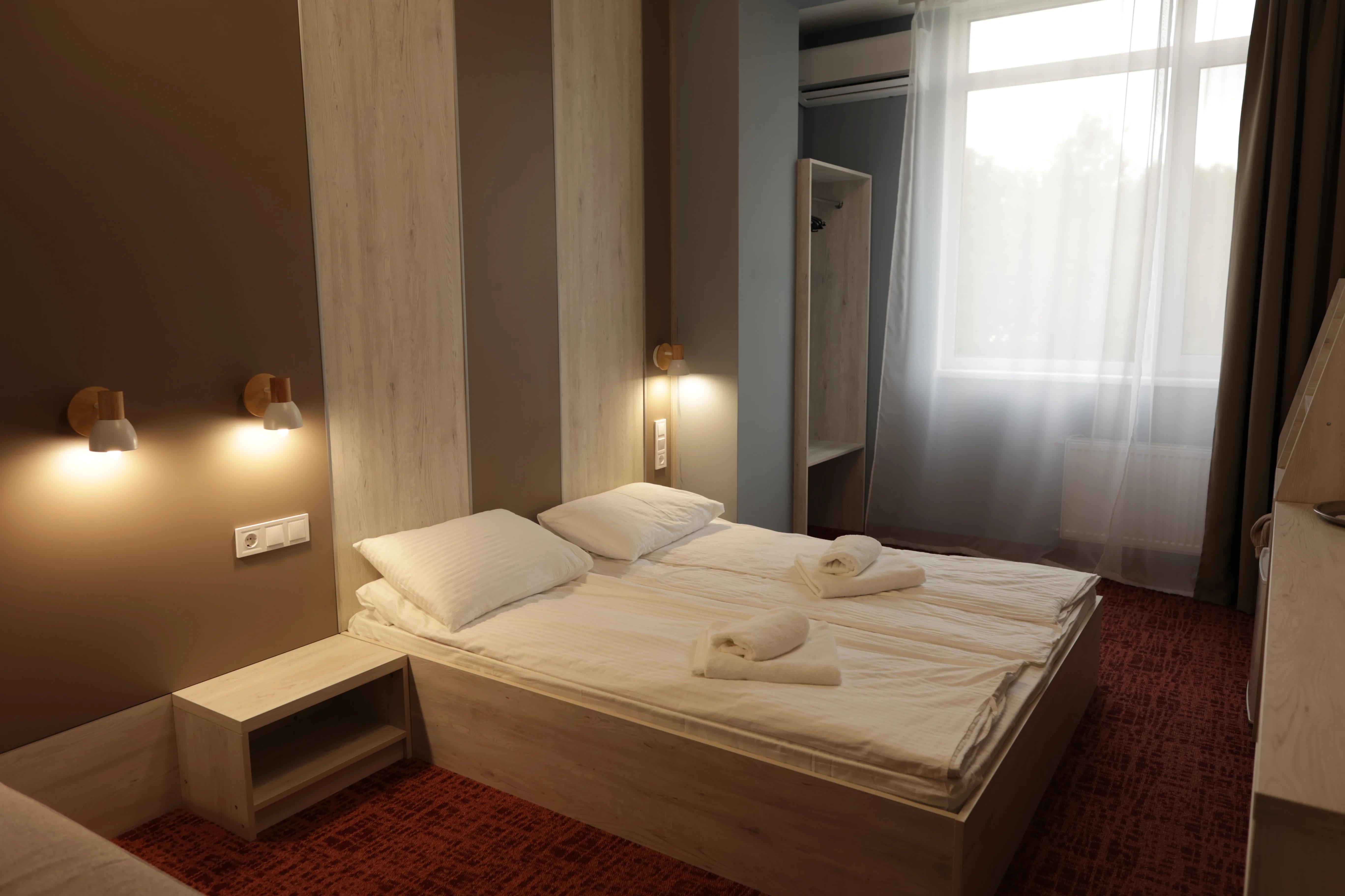 Комфортный номер 20м² с двуспальной кроватью (190х160см) и раскладным диваном (190х140см).